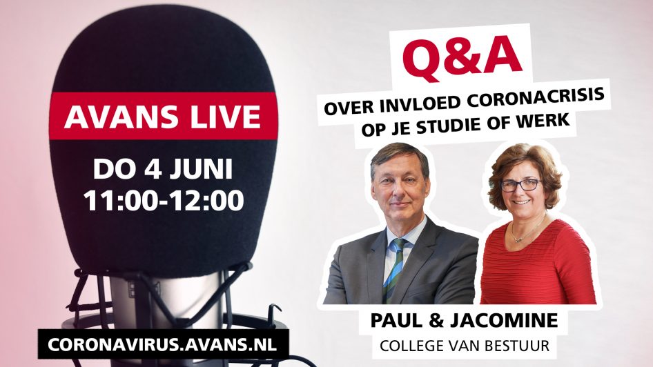 Anderhalf uur lang konden studenten, docenten en medewerkers van Avans met hun prangende vragen terecht tijdens een Q&A, live uitgezonden vanuit het Atrium in Den Bosch. Te gast waren bestuursleden Paul Rüpp, Jacomine Ravensbergen en twee leden van het crisisteam, Gabriëlle Leijh en Arnaud Opdam. Punt keek mee en licht de opvallendste vragen er voor je uit.