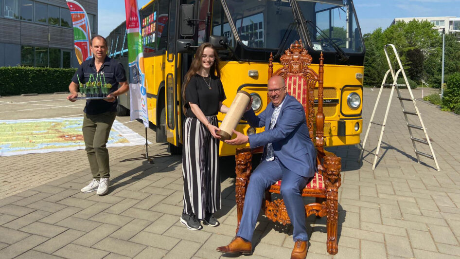 Duurzaamheidsproject SDG’s in Motion werd donderdagochtend afgesloten met een presentatie vanuit de studio bij Avans aan de Onderwijsboulevard. Daarbij presenteerden derdejaarsstudenten Business Innovation hun duurzame concepten, oplossingen en ideeën op het gebied van duurzaamheid voor echte opdrachtgevers. Op datzelfde moment overhandigde derdejaarsstudent Mara van Eijndhoven bij de SDG ToerMee-bus een koker met toekomstdromen aan de Bossche burgermeester Jack Mikkers. Die bevat allerlei dromen om de stad Den Bosch duurzamer te maken.