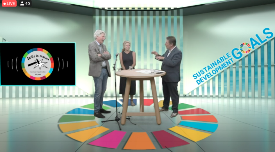 De eindpresentatie van SDG’s in Motion, waar honderd studenten Business Innovation aan werkten, was op datzelfde moment vanuit de studio bij Xplora in Den Bosch. Op welke manier deelnemende studenten aan het project hadden gewerkt, lieten ze zien via een vooraf opgenomen video, live in de studio of door in te bellen.