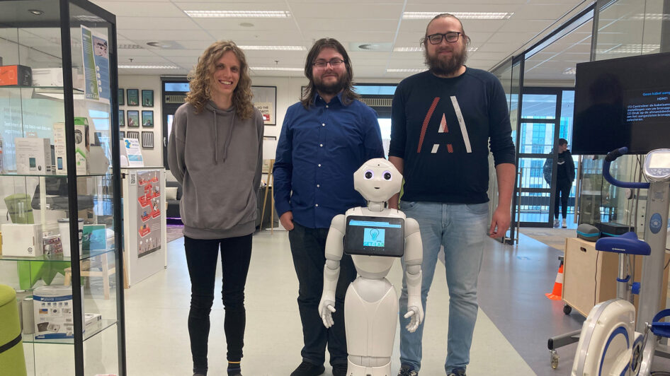 In het GET-lab word je binnenkort begroet door een wel heel ongewone collega: robot Pepper. Tenminste, als het aan Roderik Weijenberg, Tim de Vries en Erwin van Hunnik ligt. De studenten Technische Informatica onderzoeken hoe ze van de zorgrobot een volwaardige GET-labcollega kunnen maken.