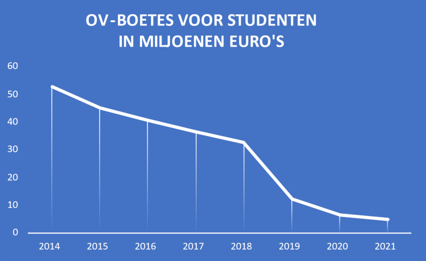 Ook helpt het dat verlopen ov-kaarten sinds 2020 na vier weken alsnog op een blacklist worden gezet zodat studenten er niet meer mee kunnen reizen. Maar er is dan al wel een boete uitgedeeld. Zonder alle maatregelen zou het boetebedrag in 2021 nog 27 miljoen euro hebben bedragen, schatten de onderzoekers.