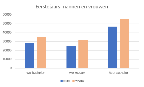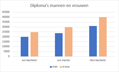 Dus reiken de instellingen ook meer diploma’s aan vrouwen uit dan aan mannen. Ook hier is het verschil weer vele duizenden.