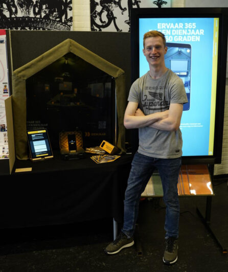 Alle projecten die tijdens de expositie waren te zien, zijn met een voldoende afgerond. Mika van de Wiel was een van die studenten. Hij creërde een VR-wereld waardoor mensen meer informatie krijgen over het werk binnen Defensie. ‘’Uit gesprekken die ik voerde, blijkt dat twee op de drie mensen bij Defensie wil of er ooit over na heeft gedacht. Alleen krijgen mensen er vaak een vertekend beeld van. Zo denken ze bijvoorbeeld dat ze veel in de modder kruipen, de hele dag in het bos moeten schieten of dat het niet voor vrouwen is.’’ Mika heeft een virtuele wereld gemaakt waarin je enkele vragen krijgt. Op basis van jouw gegeven antwoorden, geeft de website informatie die aansluit op jouw interesses. ‘’Zo kun je bijvoorbeeld luisteren naar militairen die hun ervaringen delen.’’ Op deze manier krijgen geïnteresseerden meer informatie over Defensie. Ook zorgt dit er volgens de student voor dat mensen langer op de website blijven hangen dan normaal. De gebruiker wordt namelijk continu geprikkeld met nieuwe vragen. Voor zijn afstudeerproject kreeg hij een tien. ‘’We wisten niet goed wat we nog meer moesten verwachten van studenten’’, licht Eke Rebergen, een van de beoordelaars, toe.
