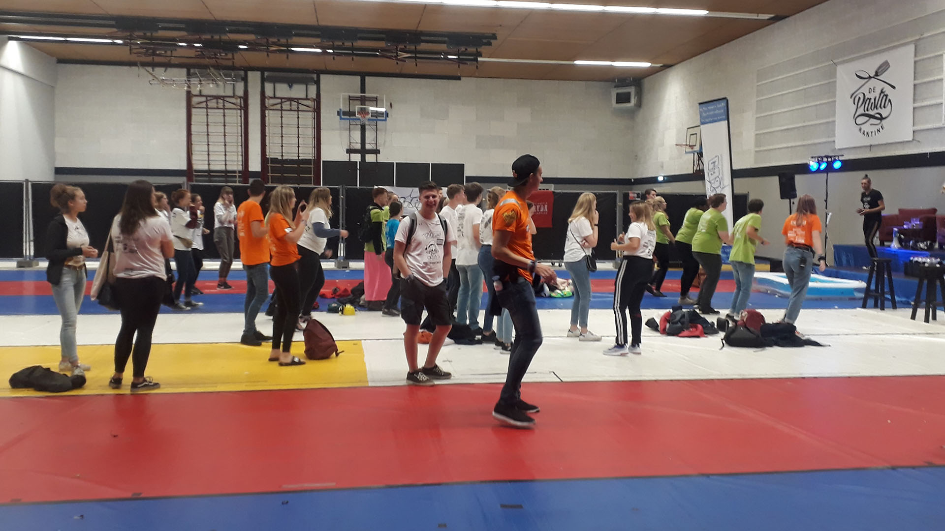 24 eerstejaarsstudenten en een grote groep begeleiders dansen vanochtend in de sporthal van Bress op..