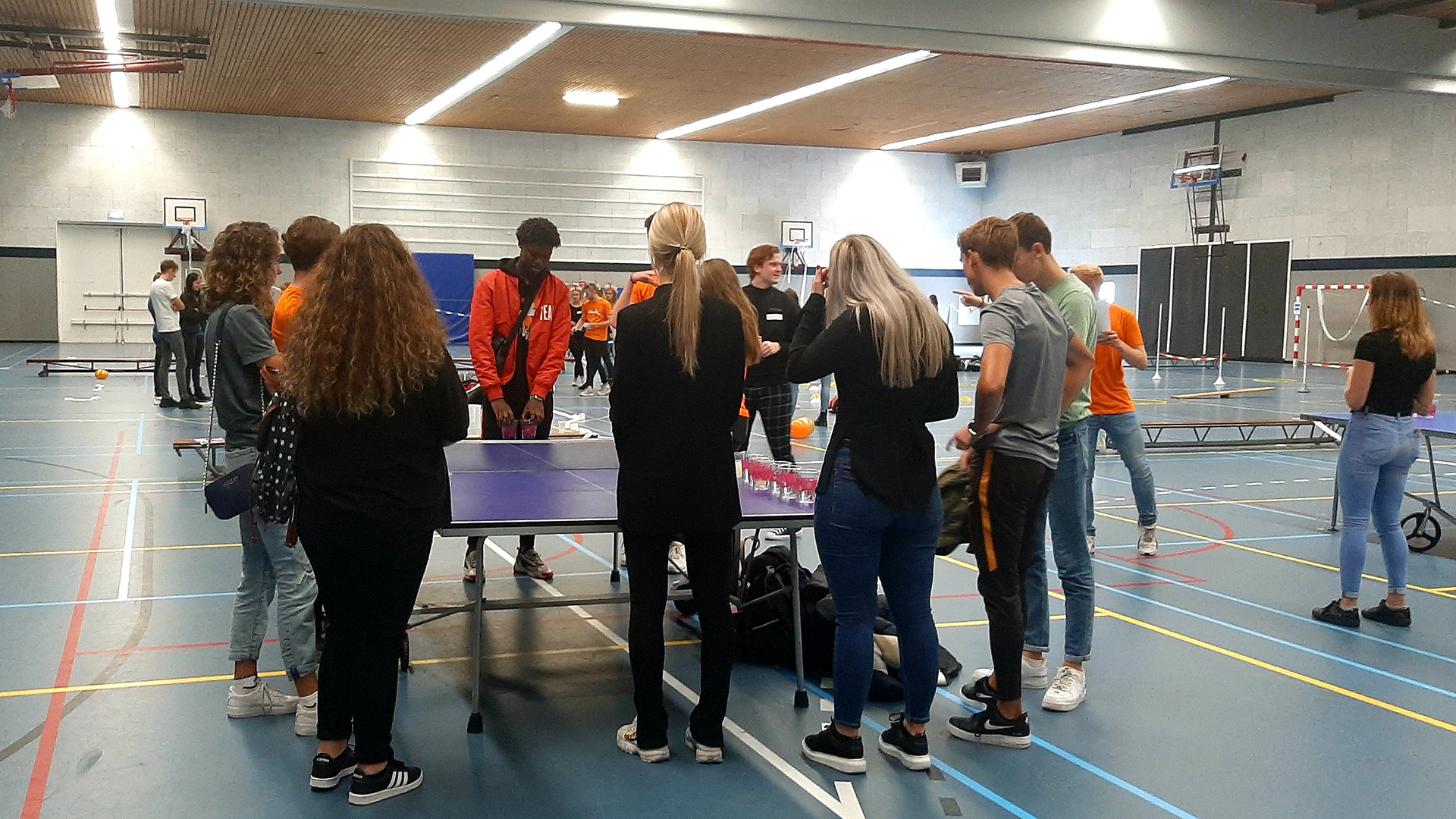Doventolk Irma imiteren (oftewel hints spelen) in een sporthal versierd met wc-papier: de introductiedag van..