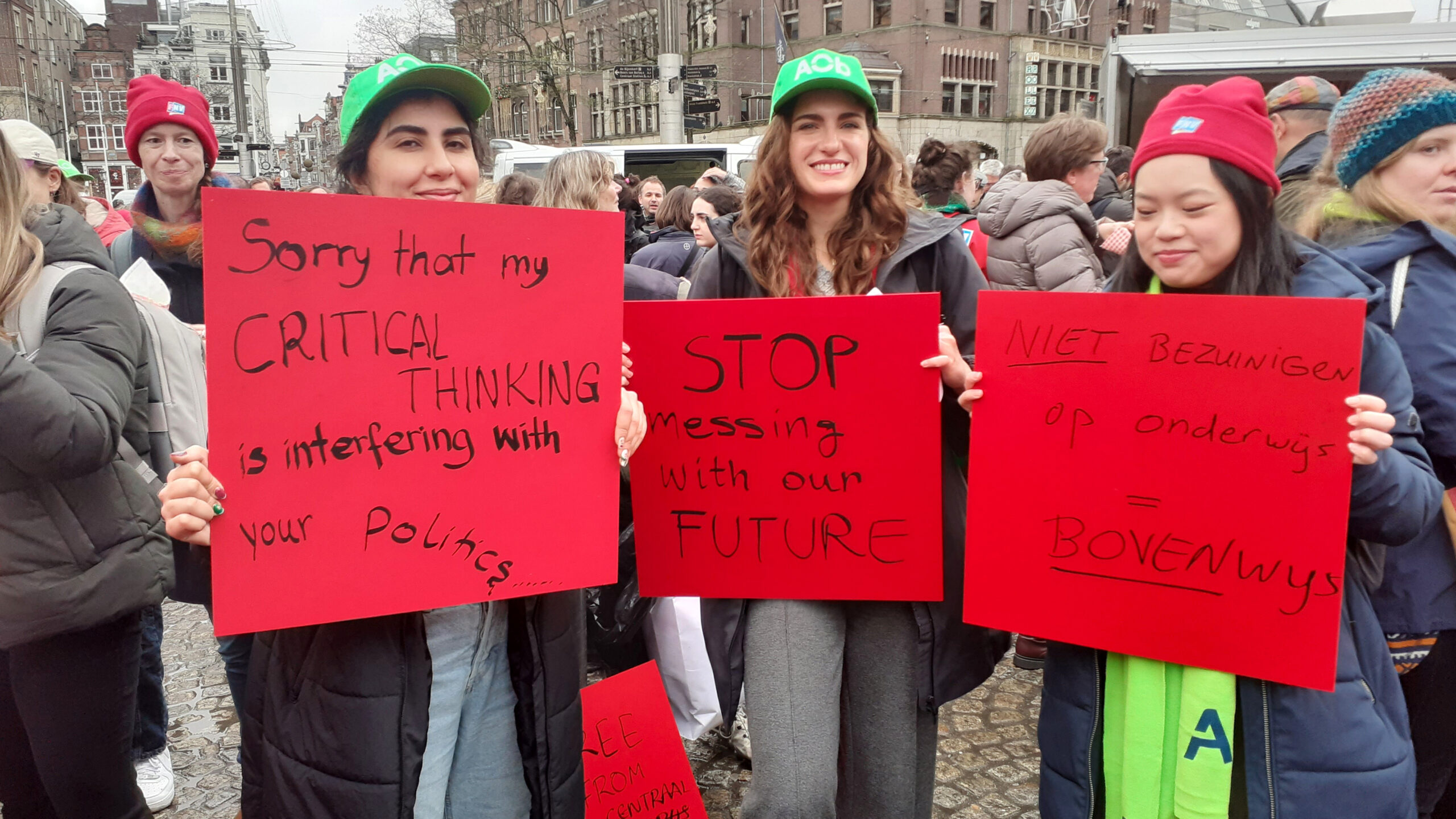 Ruim zevenduizend studenten, docenten en onderzoekers kwamen dinsdag in Amsterdam demonstreren tegen de bezuinigingen op..