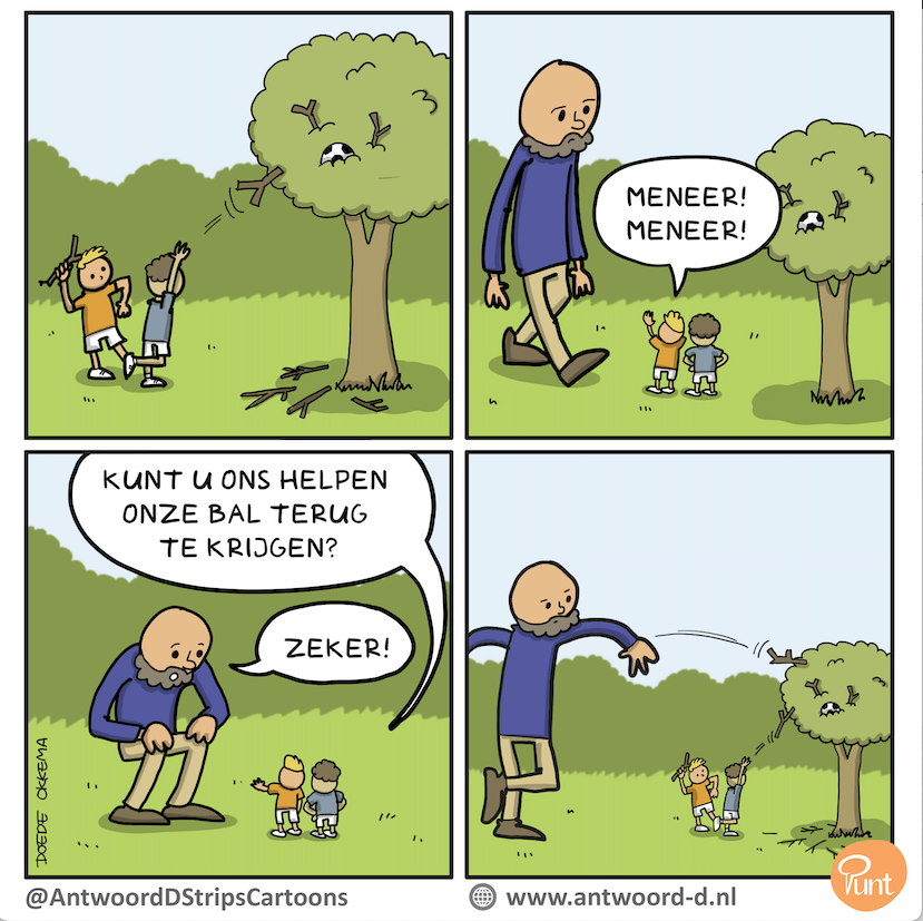 Freelance cartoonist en docent Technische Bedrijfskunde van Avans Doede Okkema maakt voor Punt elke maand een cartoon...